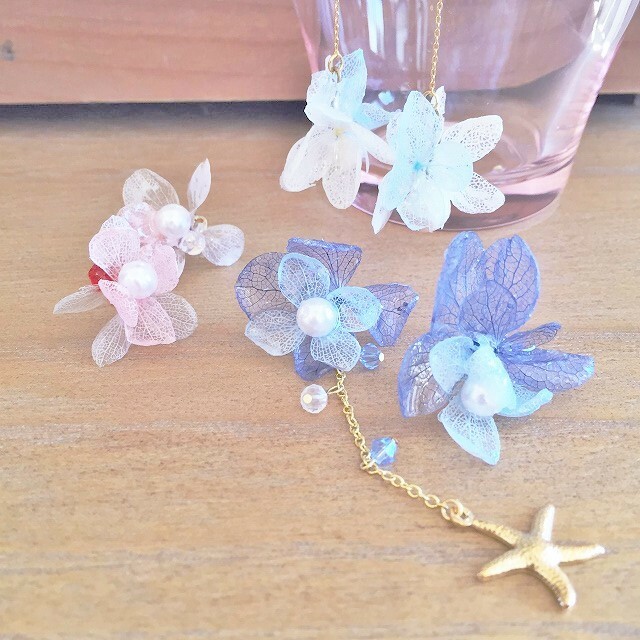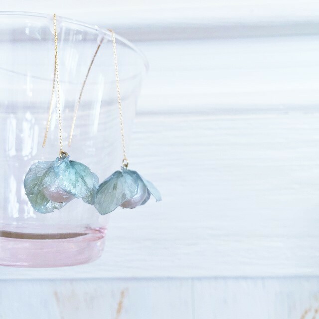 今の季節にぴったりな、つやつやとろーんなお花のアクセサリーあります。