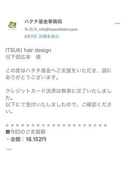 系列の支援団体「ハタチ基金」へ寄付させていただきました。