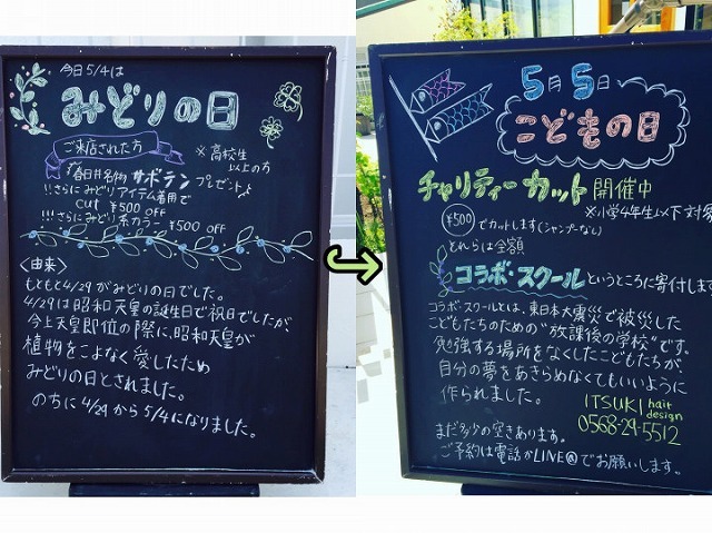 当たり前にあることが恵まれているんだということを忘れずに、毎年こどもの日はチャリティカットを行っていきたいと思います。
