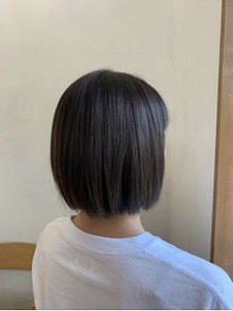 こちらも一見グレージュのパッツンボブですが、