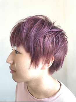 大学生の男の子も、ブリーチ後にピンクパープルにしました!