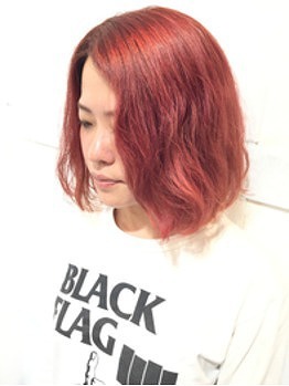 アッシュやグリーンの寒色系だけでなく、ビビットな赤系もダブルカラーで作れますよ☆