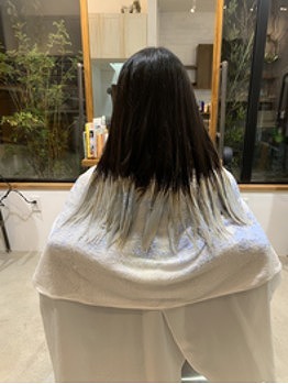 ブルーはブリーチが甘いとくすんで暗くなりがちなので、しっかりとブリーチすることが大切です。
