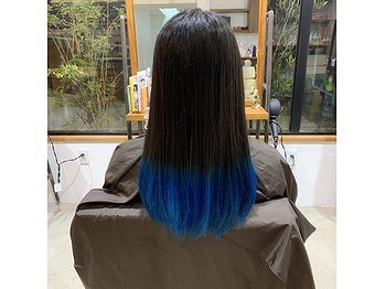 - 人生初カラーで毛先をブルーに!
