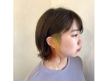 人気のインナーカラー、赤系ならブリーチなしでキレイに発色できます。