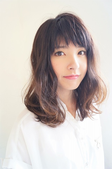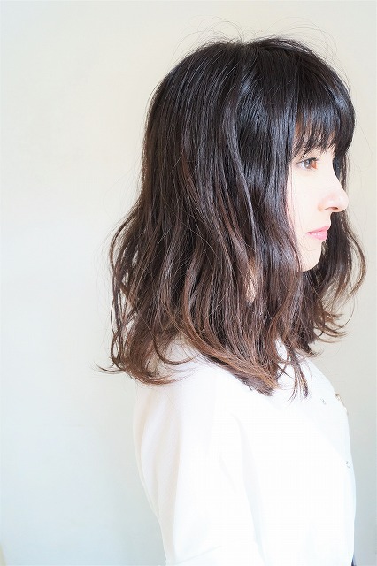 | 表面は細く、内側は太めにハイライトを入れてます。その後、全体を根元から徐々に明るくなっていくグラデーションになるように染めました。カットラインは重め、動きが出るように内側にすきを入れてます。 |